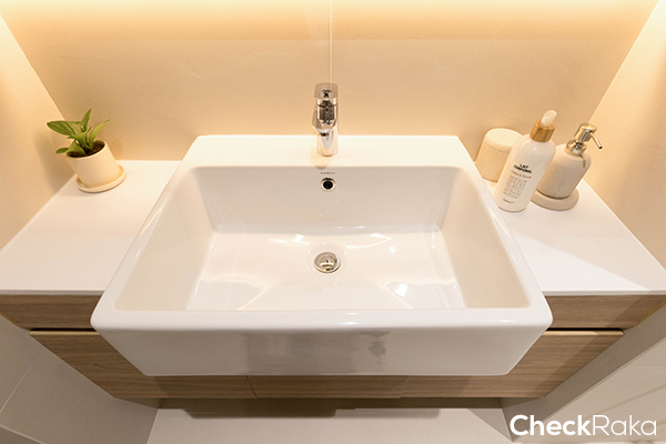 อ่างล้างหน้าเดินท่อแยกน้ำร้อน-น้ำเย็น