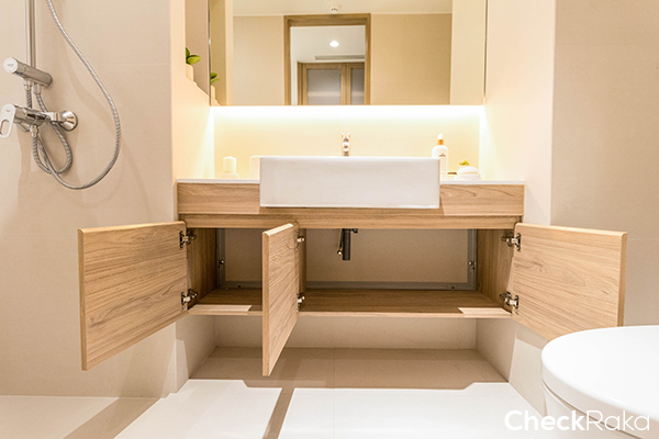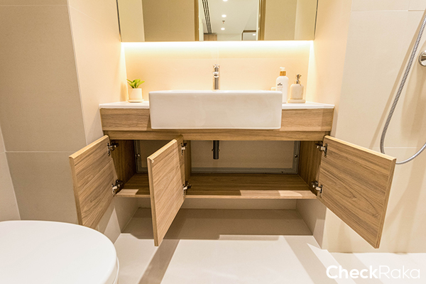 ชั้นเก็บของใต้อ่างล้างหน้าสำหรับใส่อุปกรณ์ ของใช้ในห้องน้ำ สะดวกต่อการใช้งาน
