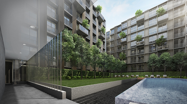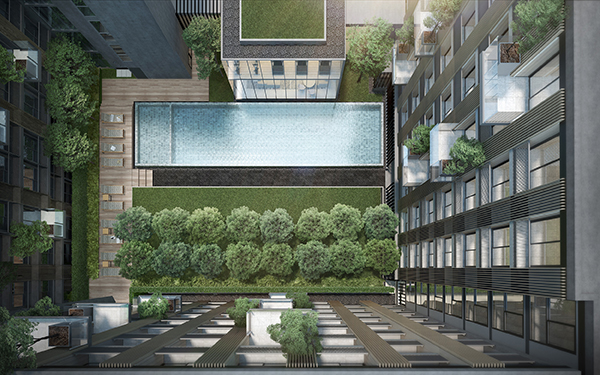 Serene Courtyard ที่เป็นหัวใจของโครงการ มอบบรรยากาศแห่งการผ่อนคลายที่โอบล้อมไปด้วยธรรมชาติ