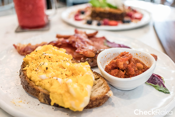 สาวกเบคอนพลาดไม่ได้เลย เบคอนหอมๆ ชิ้นโต มาพร้อมกับขนมปังและไข่