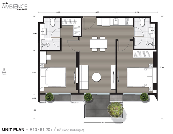 Unit Plan ขนาด 61.20 ตร.ม. 2 ห้องนอน