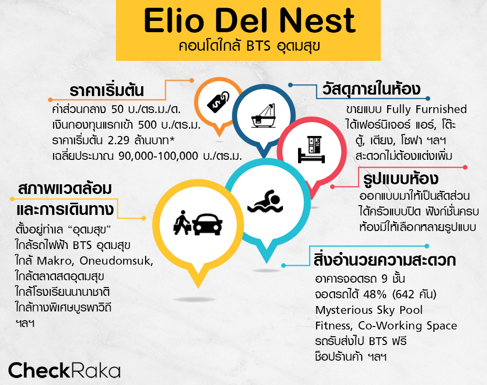 "อุดมสุข" ทำเลที่กำลังเติบโตขึ้นเรื่อยๆ ตอนนี้มีคอนโดมิเนียมโครงการใหม่ปักธงลงตรงข้าม Makro นั่นก็คือ เอลลิโอ เดล เนสท์ (Elio Del Nest) จากค่ายอนันดาเจ้าเก่าเจ้าเดิมนั่นเอง คราวนี้ Elio ขยับเข้าใกล้ BTS อุดมสุขในระยะ 750 เมตร พร้อมกับรถรับส่งคอยบริการ ห้องตัวอย่างก็ให้ของใช้จำเป็นมาเกือบครบ และแบ่ง layout ห้องเป็นสัดส่วนค่อนข้างดี ถ้าพร้อมแล้ว เลื่อนลงไปดูเจาะลึกทำเล และรายละเอียดโครงการพร้อมๆ กันเลยค่ะ