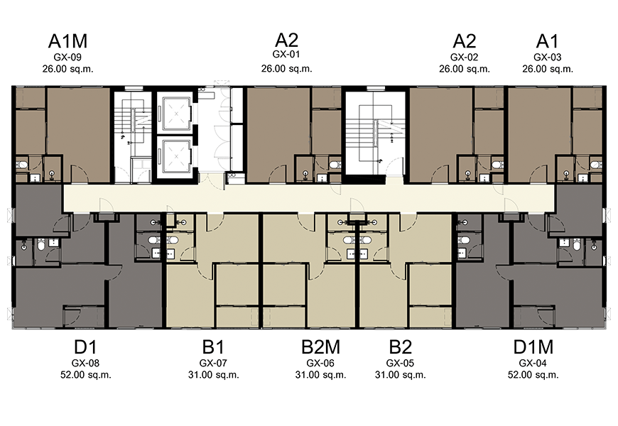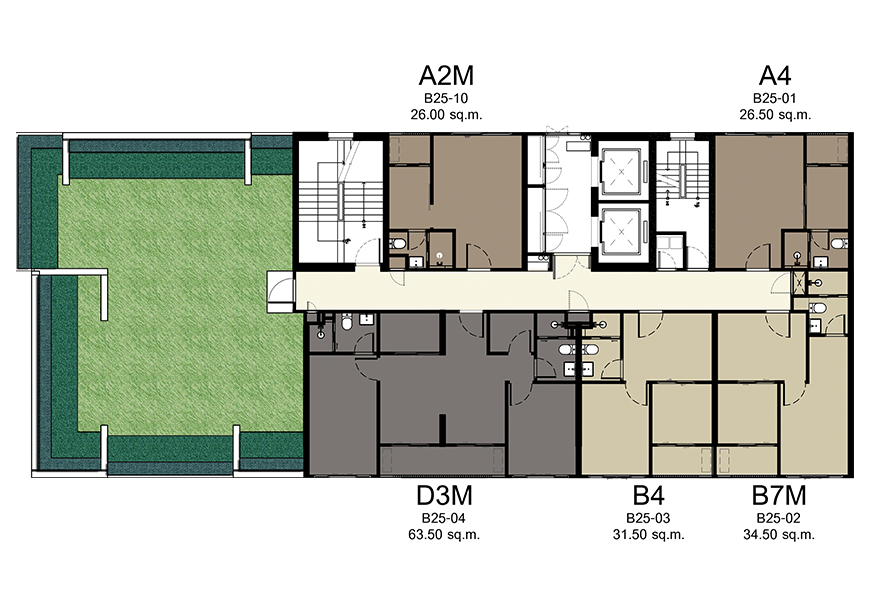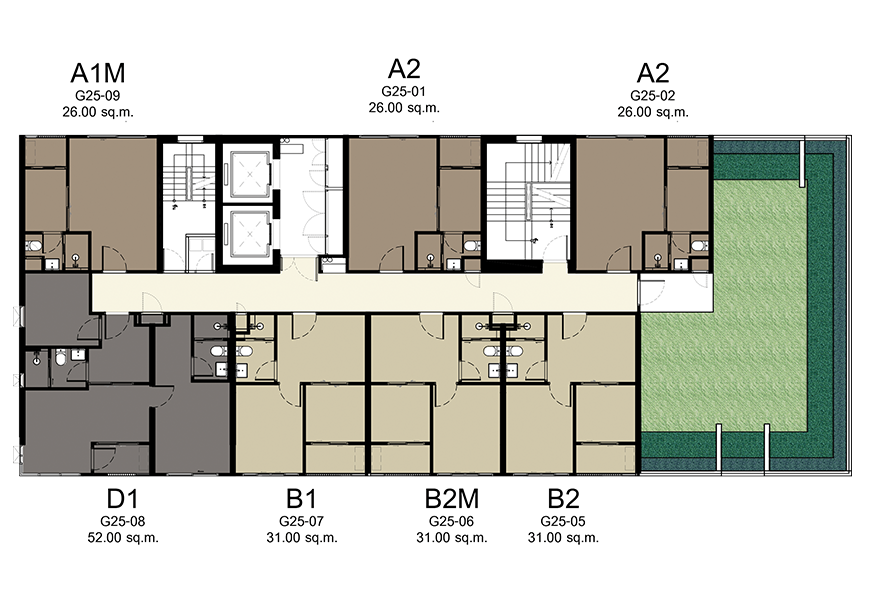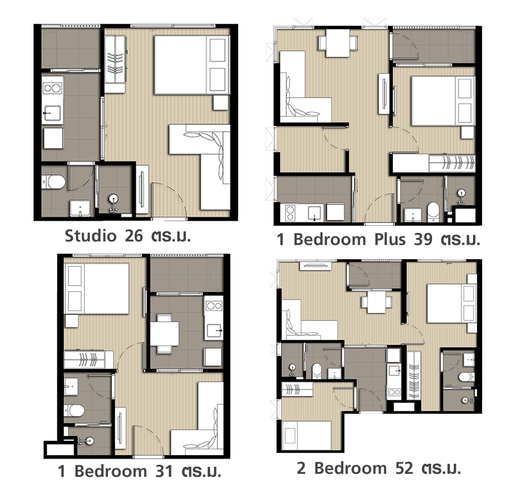 - Studio ขนาด 26.00 - 27.00 ตร.ม.