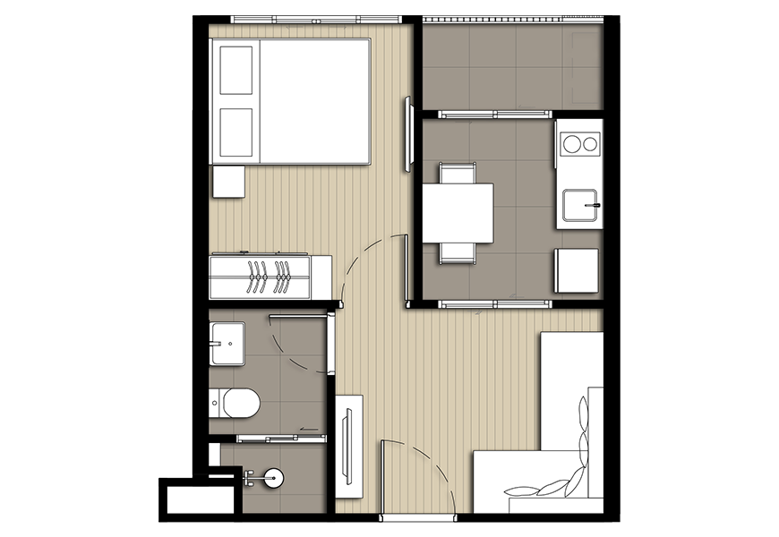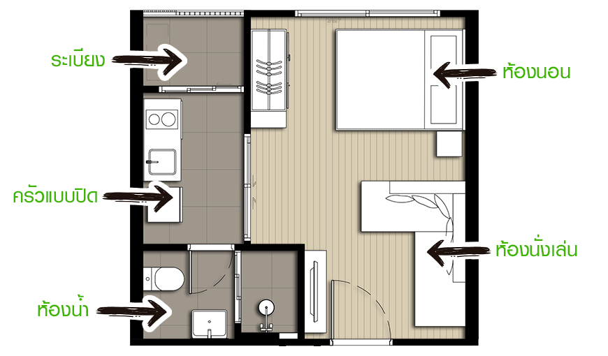 - ภาพห้องตัวอย่างแบบ Studio ขนาด 26 ตร.ม.
