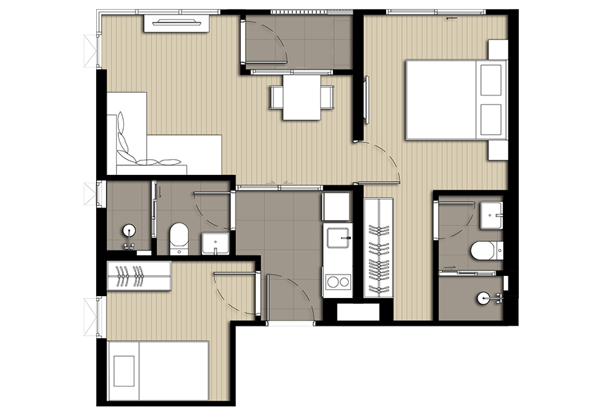 - ภาพห้องตัวอย่างแบบ 2 Bedroom ขนาด 52 ตร.ม.