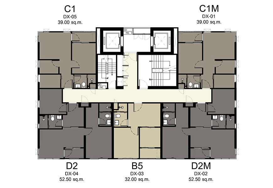 - 2 Bedrooms ขนาด 39.00 - 41.5 ตร.ม.
