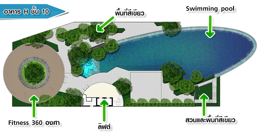 ภาพจำลองบรรยายากาศ สระว่ายน้ำ บริเวณชั้น Ground