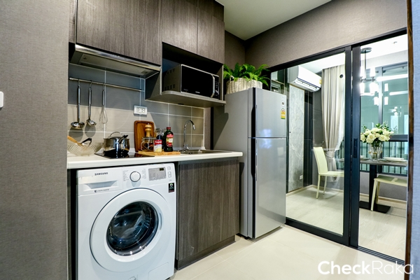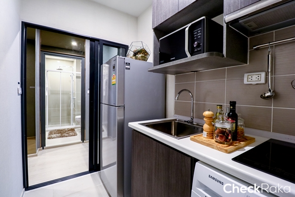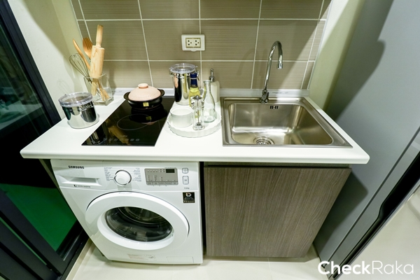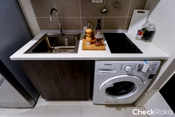 ในห้องครัวก็เป็นครัวแบบปิด ลงไปซื้อของสดซื้อผักที่ Makro ตรงข้ามโครงการมาทำอาหาร จัดเต็มได้เลย