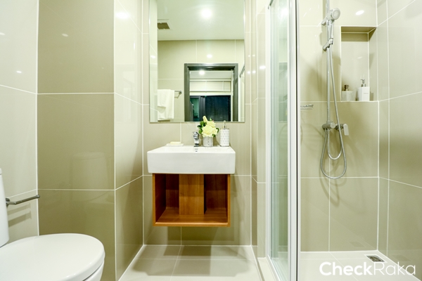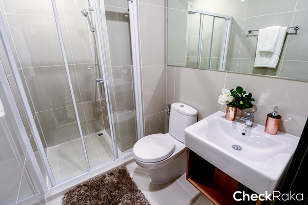 ในห้องน้ำของโครงการนี้จะให้มาเหมือนกันทุกห้องเลย เตรียมทุกอย่างไว้ให้ครบแล้ว