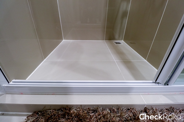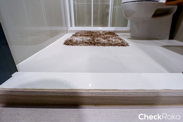 ส่วนที่เป็นฉากกั้นอาบน้ำ จะยกธรณีกั้นขึ้นมาเล็กน้อย กั้นส่วนเปียกส่วนแห้งได้เป็นอย่างดี