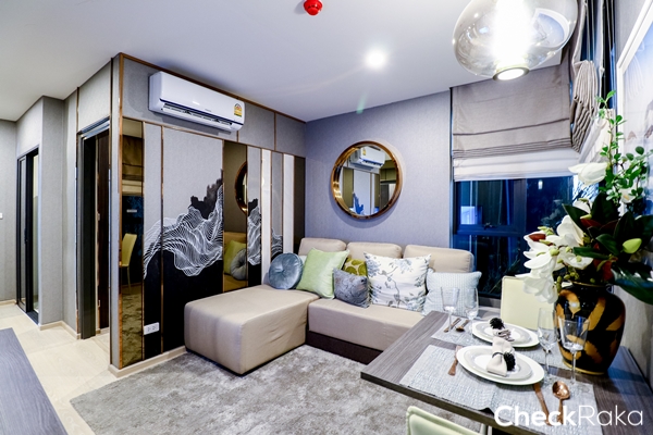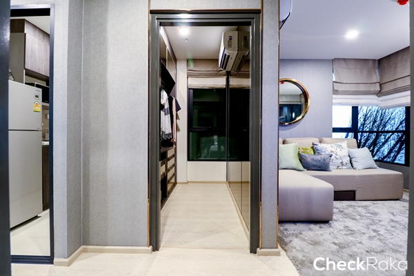 ห้องพักอาศัยของโครงการส่วนใหญ่เป็นห้องขนาด 1 ห้องนอน การวาง Layout ห้องของที่นี่แบ่งแยกพื้นที่ต่างๆ ไว้เป็นสัดส่วนอย่างดี เน้นห้องครัวแบบปิดให้สามารถทำอาหารหนักๆ ได้เต็มที่ โดยมีประตูบานสไลด์ปิดไว้ให้เรียบร้อย ส่วนห้องน้ำก็กั้นส่วนเปียกส่วนแห้งรวมถึงให้สุขภัณฑ์ในห้องน้ำมาครบแทบไม่ต้องติดตั้งอะไรเพิ่มเติม ความสูงของห้องอยู่ที่ 2.6 เมตร ที่สำคัญที่นี่ขายแบบ Fully Furnished ภาพห้องตัวอย่างที่เราจะได้เห็นต่อไปนี้ก็จะใกล้เคียงห้องจริงมาก มีเพียงของตกแต่งและผนัง หรือรายละเอียดเล็กๆ น้อยๆ เท่านั้น ที่ไม่ได้ให้มา ห้องตัวอย่างที่เราจะได้เห็นวันนี้มี 4 แบบค่ะ