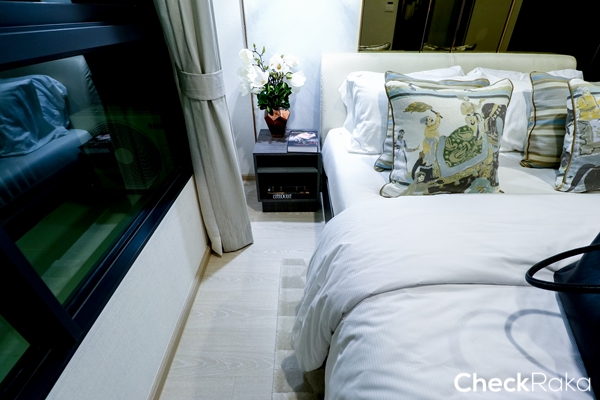 ระยะทางเดินฝั่งติดหน้าต่างสามารถวางโต๊ะข้างเตียงได้ และเดินมาเปิดม่านเปิดหน้าต่างได้สบาย