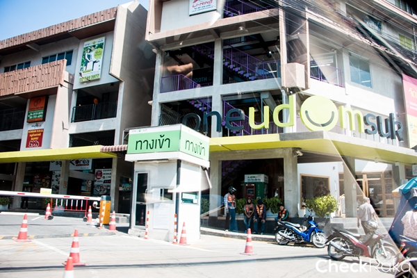 ทำเลนี้เป็นย่านที่ความอุดมสมบูรณ์กำลังพอดี ถ้าดูจากสถานที่รอบๆ โครงการแล้วก็ถือว่าเพียงพอที่อำนวยความสุขให้กับชีวิตคนอยู่คอนโดย่านนี้ได้อย่างสบายๆ ขอเล่าให้ฟังตั้งแต่เลี้ยวเข้าถนนอุดมสุขเลยดีกว่า ด้านซ้ายมือที่เจอก็มีธนาคารไทยพาณิชย์ ถัดไปเป็น One Udomsuk เป็น Community Mall ที่เต็มไปด้วยร้านอาหารหลากหลายสไตล์ ถัดไปเป็นตลาดอุดมสุข ที่เราสามารถจับจ่ายใสอยทั้งของสดของคาวของหวานได้เต็มที่ ส่วนฝั่งตรงข้ามจากจุดนี้ก็มีร้านอาหาร ร้านขายสินค้าเครื่องใช้ต่างๆ มากมาย มุ่งหน้าต่อจะมีปั๊มน้ำมันเพียว สำหรับคนมีรถยนต์ก็ถือเป็นเรื่องสะดวกมาก พอใกล้จะถึงโครงการก็มี Makro Food Service อยู่ตรงข้าม เป็นอะไรที่สะดวกกับชีวิตมนุษย์คอนโดมาก จับจ่ายของสดเข้าตู้เย็นไว้ทำอาหาร แถมถัดไปอีหน่อยก็มีปั๊ม Esso ในปั๊มก็มี Lotus Express ด้วย ติดๆ กันมี 7-11 ครบเลย