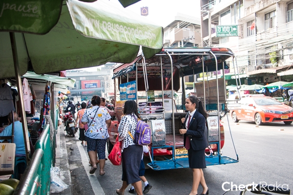 คนย่านนี้ใช้รถสองแถวเข้าออกในซอยค่อนข้างสะดวก หรือจะเรียกพี่วินก็โบกได้เลย