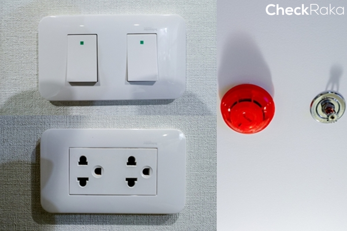ในห้องได้ปลั๊ก สวิตช์ไฟฟ้า ปลั๊กไฟ และ Automatic Sprinkler System