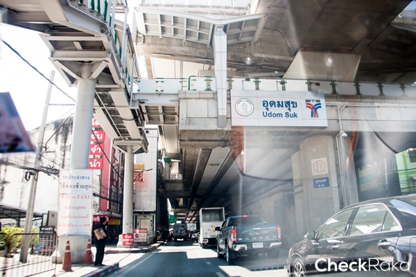 บรรยากาศถนนอุดมสุขช่วงเย็นๆ รถยังไม่ติดมากเท่าไหร่