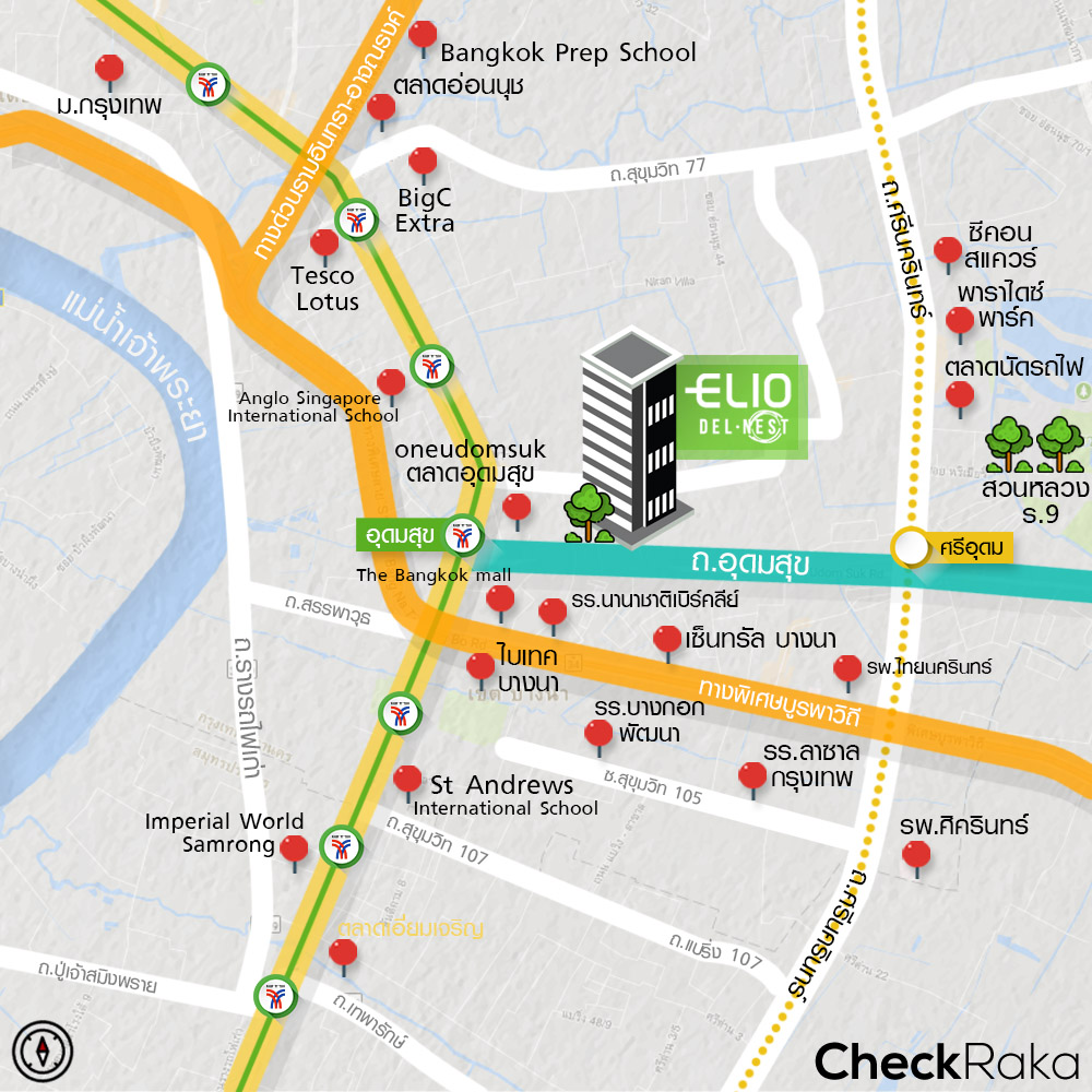 "อุดมสุข" ทำเลที่กำลังเติบโตขึ้นเรื่อยๆ ตอนนี้มีคอนโดมิเนียมโครงการใหม่ปักธงลงตรงข้าม Makro นั่นก็คือ เอลลิโอ เดล เนสท์ (Elio Del Nest) จากค่ายอนันดาเจ้าเก่าเจ้าเดิมนั่นเอง คราวนี้ Elio ขยับเข้าใกล้ BTS อุดมสุขในระยะ 750 เมตร พร้อมกับรถรับส่งคอยบริการ ห้องตัวอย่างก็ให้ของใช้จำเป็นมาเกือบครบ และแบ่ง layout ห้องเป็นสัดส่วนค่อนข้างดี ถ้าพร้อมแล้ว เลื่อนลงไปดูเจาะลึกทำเล และรายละเอียดโครงการพร้อมๆ กันเลยค่ะ
