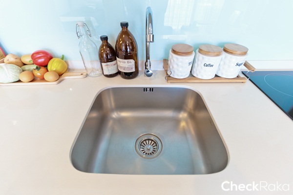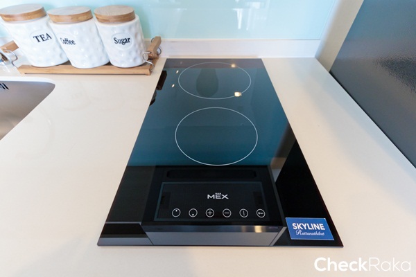 ได้ชุดครัวขนาดเล็กลงมาหน่อย แต่ยังคงได้เครื่องดูควัน เตาไฟฟ้า อ่างล้างจาน เหมือนเดิม