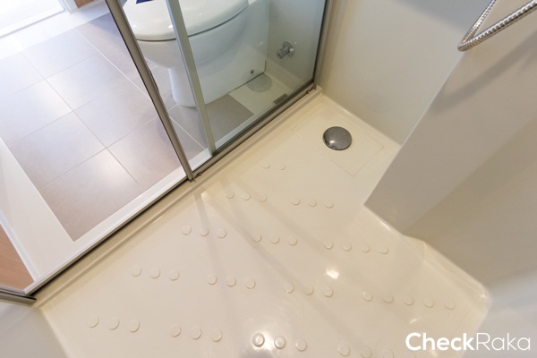 ที่พื้นมีปุ่มกันลื่น ช่วยลดความเสี่ยงจากการลื่นล้มขณะอาบน้ำได้