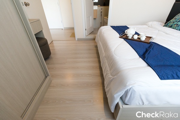ห้องนอนจบด้วยลามิเนตสีเดียวกับพื้น