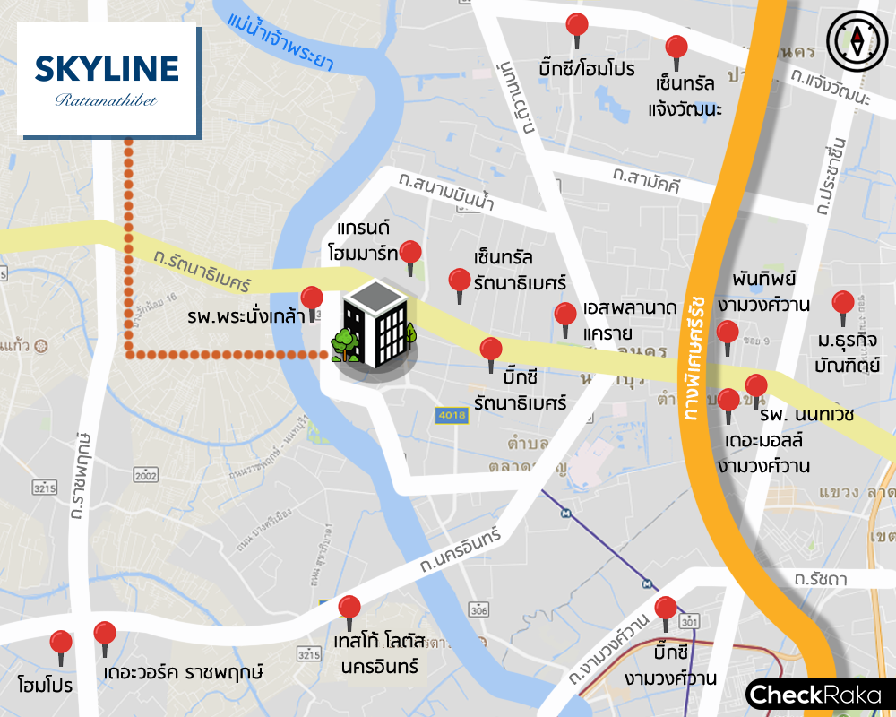 - ที่ตั้งโครงการ: ถนนรัตนาธิเบศร์ ตำบลบางกระสอ อำเภอเมืองนนทบุรี จังหวัดนนทบุรี