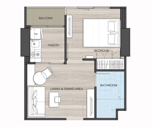 - ห้องแบบ 1 ห้องนอน 1 ห้องน้ำ Type A ขนาด 26.00 ตร.ม. เริ่มต้น 2.2 ล้าน