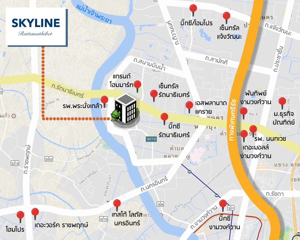 - ที่ตั้งโครงการ: ถนนรัตนาธิเบศร์ ตำบลบางกระสอ อำเภอเมืองนนทบุรี จังหวัดนนทบุรี