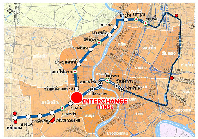 แผนผังการเชื่อมต่อของรถไฟฟ้าสายสีน้ำเงิน