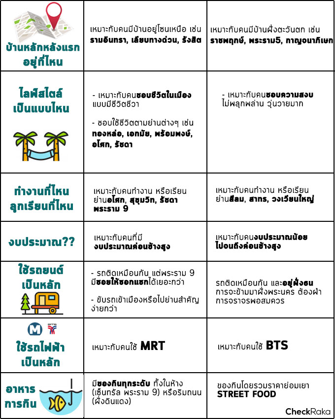 คงไม่มีคำตอบตายตัวว่าทำเลไหนน่าสนใจกว่ากันนะครับ แต่คงต้องดูว่าแต่ละพื้นที่เหมาะกับใครมากกว่า ในหลายๆ ปัจจัย ไม่ว่าจะเป็นเรื่องความสะดวกในการเดินทาง แหล่งจับจ่ายซื้อของ ไลฟ์สไตล์ของแต่ละคน รวมถึงเรื่องสำคัญอย่างงบประมาณที่ตั้งเป้าไว้อีกด้วย