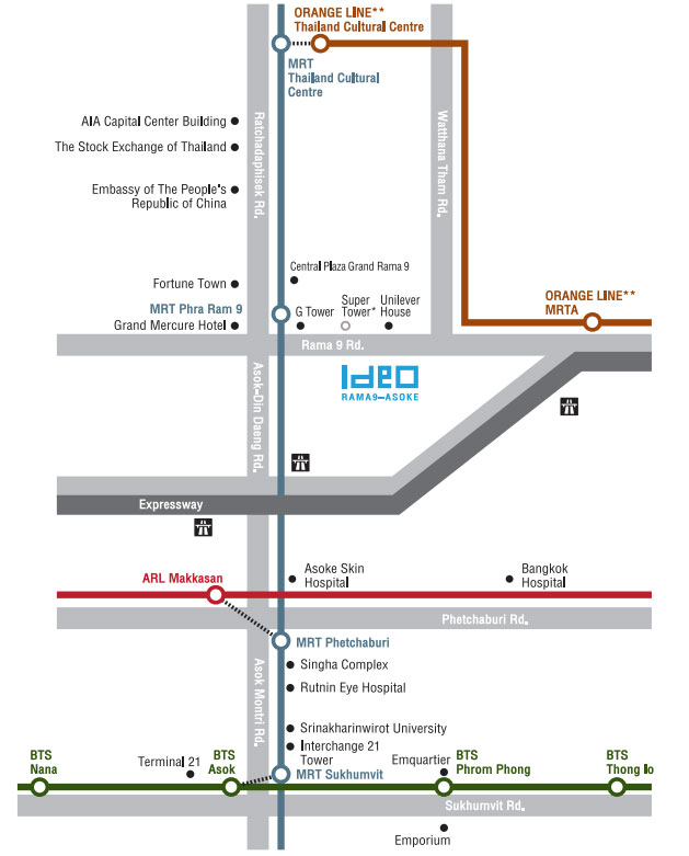 แผนที่โครงการ Ideo Rama 9 - Asoke (ไอดีโอ พระราม 9 - อโศก)