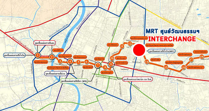 อีกหนึ่งจุดเชื่อมต่อการเดินทางในอนาคต คือ Interchange สายสีส้ม ครับ โดยจะเชื่อมกันที่ MRT สถานีศูนย์วัฒนธรรมฯ