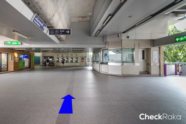 พอออกจากประตูแล้ว ทางออก 3-4 จะเลี้ยวไปด้านขวา แต่เราไม่เลี้ยว เราจะตรงไป