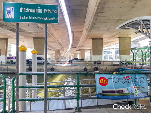 ตรงนี้ก็จะมีบอกทางไปท่าเรือ สะพานตากสิน-เพชรเกษม เราก็ไปทางนี้เลย