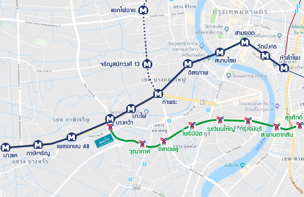 - ติดรถไฟฟ้า Interchange บางหว้า เชื่อมต่อ 2 เส้นทาง