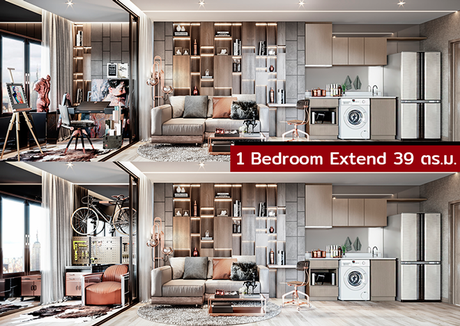 นอกเหนือจากความสวยงามแล้ว โครงการนี้เขามีห้องที่เป็น limited คือห้องแบบ 1 Bedroom Extend ขนาด 39 ตร.ม. มีเพียง 10 ยูนิตเท่านั้น ความพิเศษคือ AP ปรับพื้นระเบียงให้เป็นห้องอเนกประสงค์เพิ่มอีก 1 ห้อง ตอบโจทย์คนที่ไม่ได้ใช้ระเบียงจริงจัง ซึ่งมันดีมากถ้าทำบริเวณนี้เป็นพื้นที่ให้เราใช้งานได้เพิ่มอีก 1 ห้อง อาจจะเป็นห้องทำงาน เป็นพื้นที่โล่งๆ ไว้เล่นโยคะ หรือจะเป็น Walk-in Closet ไว้เก็บเสื้อผ้าหรือ accessory ได้อย่างเต็มที่