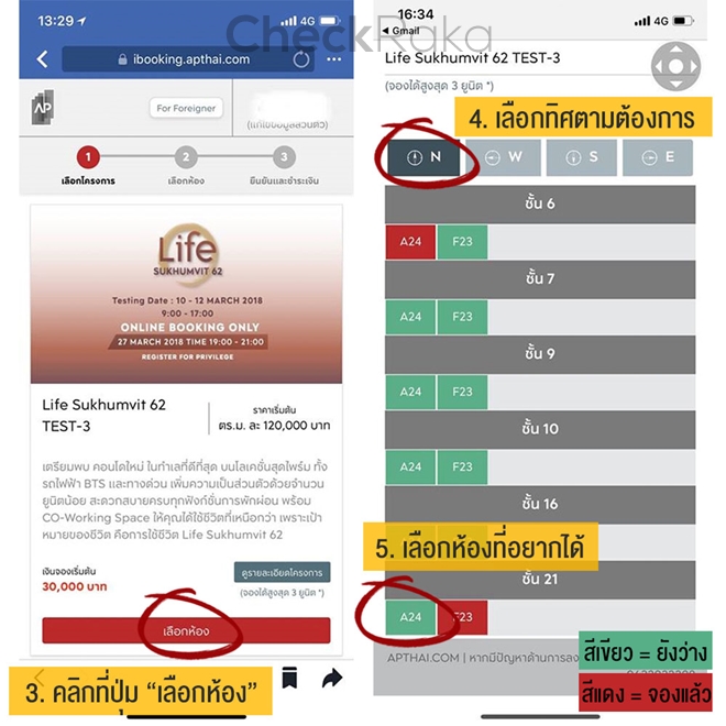 การเตรียมความพร้อมก่อนวันจองจริงที่จะมาถึงนี้ 2 ข้อที่ต้องทำก่อนวันจริงคือ อย่างแรก ต้องลงทะเบียนสร้าง Account ไว้ก่อน (ลงทะเบียนได้ที่นี่) ขั้นตอนนี้จะให้เรากรอกรายละเอียด ชื่อ-นามสกุล เลขบัตรประชาชน และที่อยู่สำหรับจัดส่งเอกสาร E-mail และรหัสผ่านที่เราใช้ลงทะเบียน จะเป็น E-mail เดียวกันกับที่เราจะเข้าระบบในวันจองจริงค่ะ และขั้นตอนที่ 2 ก็สำคัญมากๆ เลย เราจำเป็นต้องศึกษาก่อนว่า ตำแหน่งห้อง ทิศ ชั้น และ Type ของห้องที่เราต้องการของอยู่ตรงไหน Number อะไร เช่น C03 Number นี้จดไว้ให้พร้อม