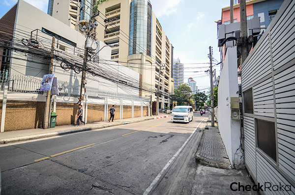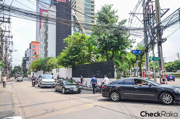หน้าโครงการติดถนนรัชดาภิเษก ด้านหลังโครงการก็ติดกับซอยสุขุมวิท 16 ที่เราเดินมาเมื่อสักครู่
