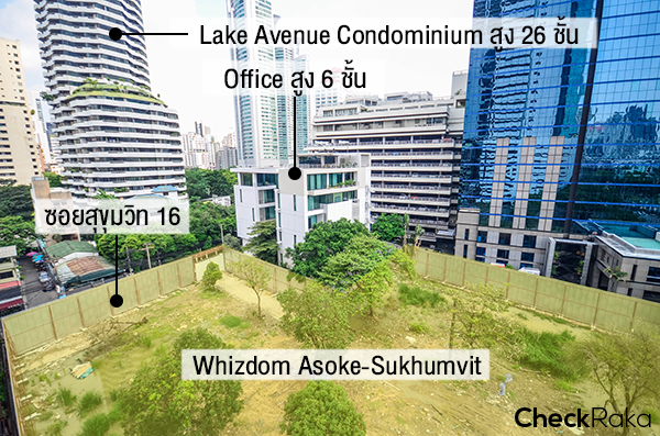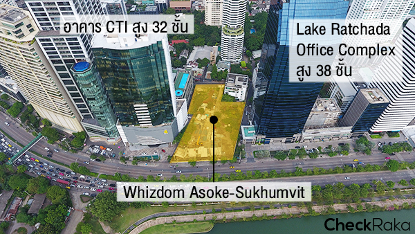 ติดกันกับโครงการ Whizdom Asoke - Sukhumvit อีกฝั่ง คือ Lake Ratchada Office Complex สูง 38 ชั้น
