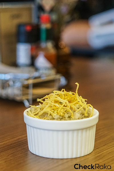 เมนูแรกที่สั่งคือ "มันบดทรัฟเฟิล" โรยหน้าด้วยมันฝอยทอดกรอบ รสชาติดีมากๆ ค่ะ