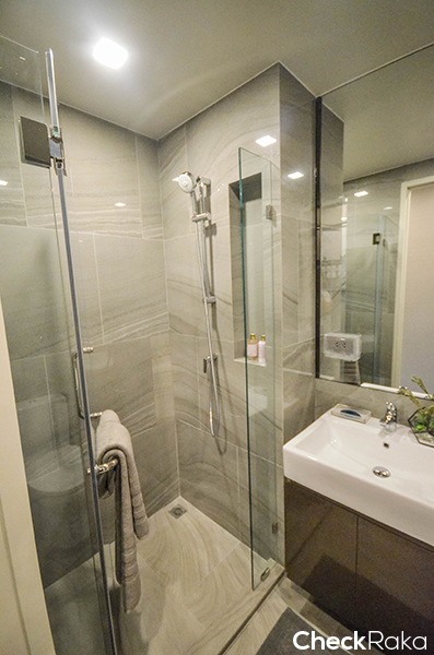 ห้องน้ำจะอยู่ตรงข้ามกับห้องนอนเล็ก ห้องนี้จะไม่มีอ่างอาบน้ำค่ะ แต่จะเป็น Shower Box