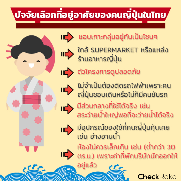ชาวต่างชาติมักจะอยู่รวมตัวกันเป็นโซนๆ ในกรุงเทพฯ อย่างเช่นชาวจีนก็จะอยู่ในแถบรัชดาภิเษก-พระราม 9 ส่วนชาวญี่ปุ่นก็จะรวมกันอยู่ในในโซนอโศก-พร้อมพงษ์-ทองหล่อ ทั้ง 3 โซนที่ว่าเราก็เรียกรวมๆ ว่าย่านคนญี่ปุ่น สังเกตได้จากร้านค้า มีร้านรวงต่างๆ หรืออพาร์ตเมนต์ที่ดูญี่ปุ๊น...ญี่ปุ่นไม่น้อย และจะมีภาษาญี่ปุ่นเพื่ออำนวยความสะดวกด้วย
