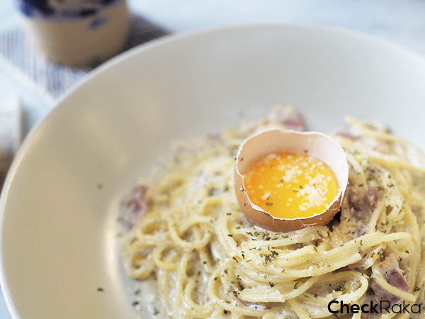 มาถึงเมนูอาหารกันบ้าง ลองสั่งคาโบนารามาชิม ทั้งเส้นและครีมอร่อย หอม กลมกล่อม จนอยากจะสั่งจานที่ 2 เลยค่ะ