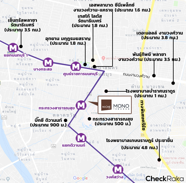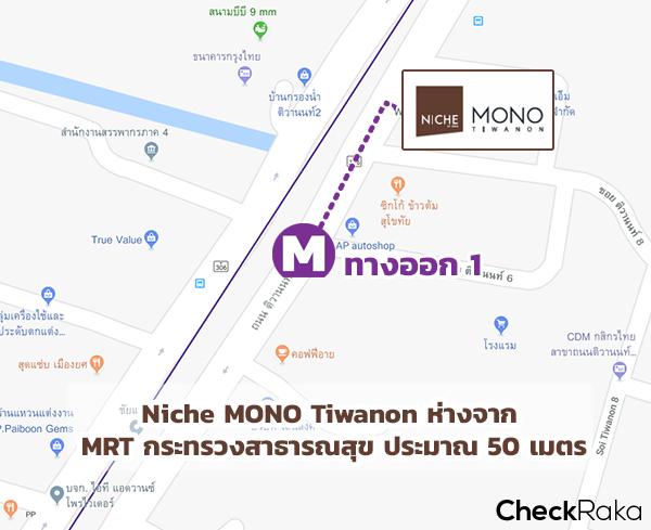 นิช โมโน ติวานนท์ ห่างจาก MRT สถานีกระทรวงสาธารณสุข ทางออกที่ 1 ประมาณ 50 เมตร