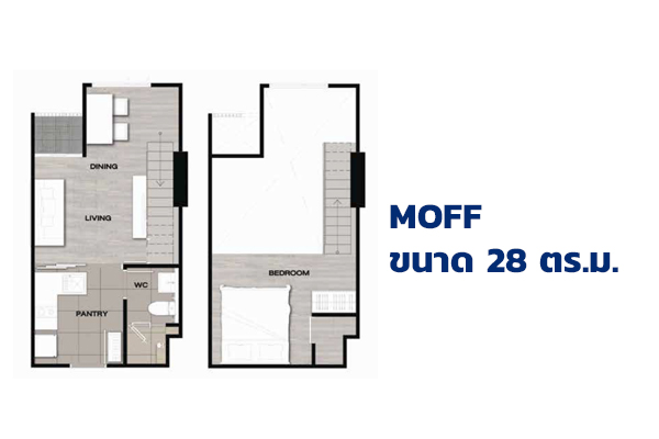 ห้องแบบ Moff จะค่อนข้างคุ้มในเรื่องของพื้นที่ใช้สอย แถมเพดานยังสูงโปร่งอีกด้วย