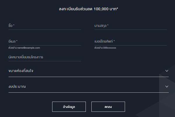 ลงทะเบียนรับส่วนลด 100,000 บาท