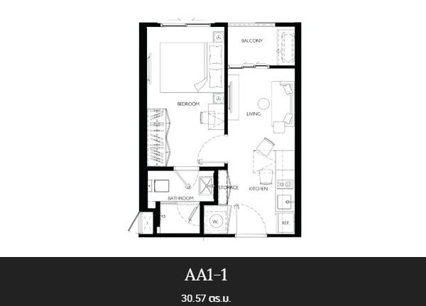 - ห้องแบบ 1 ห้องนอน ราคาเริ่มต้นอยู่ที่ 3.8 ล้านบาท