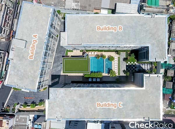 - อาคาร B : จะคล้ายกันคือ เป็นห้องพักอาศัยทั้งหมด 15 ยูนิต/ชั้น แบบ 1 ห้องนอน 12 ยูนิต และแบบ 2 ห้องนอน 3 ยูนิต