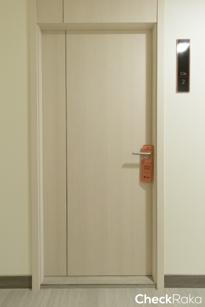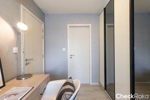ประตูบานห้องนอนเป็นบานสวิงมือจับก้านโยก มีตู้เสื้อผ้าด้านหลังประตูหน้ากว้าง 75 ซม.