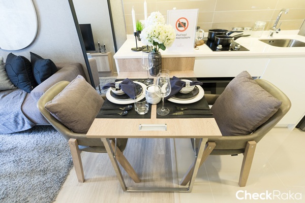 ข้อดีของการวางโต๊ะในมุมนี้คือใช้เป็นพื้นที่สำหรับเตรียมอาหารได้