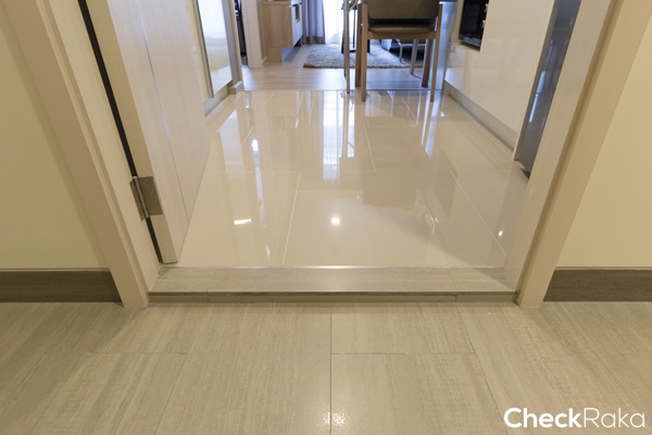 ธรณียกสูง 12 ซม. ถือว่าค่อนข้างสูง ช่วยป้องกันน้ำได้ดี แต่เวลาเดินเข้าออกระวังสะดุดด้วย